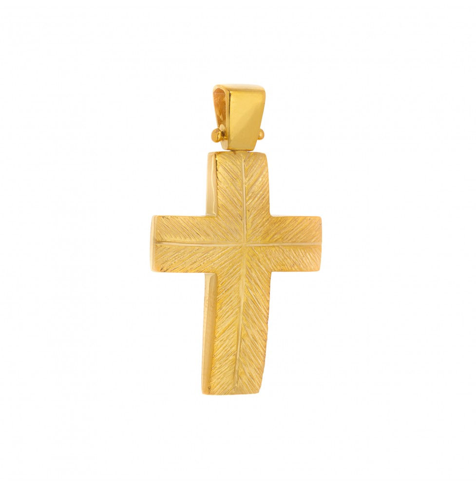 Ανδρικός σταυρός  από κίτρινο χρυσό 14 καρατίων, κομψή γραμμή.